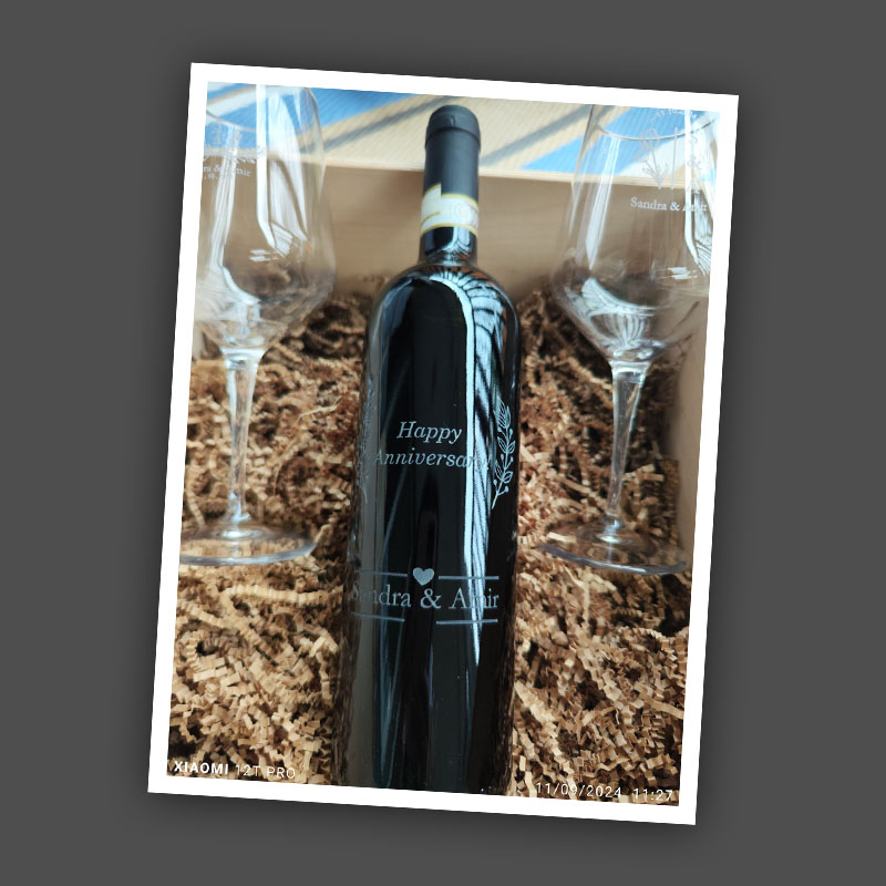 - Engraved wine bottles and tumblers, perfect for weddings, events, and corporate gifts.