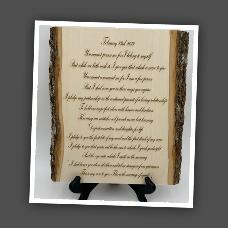 - Engraved wooden or acrylicplaques with exclusive phrases and designs.